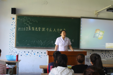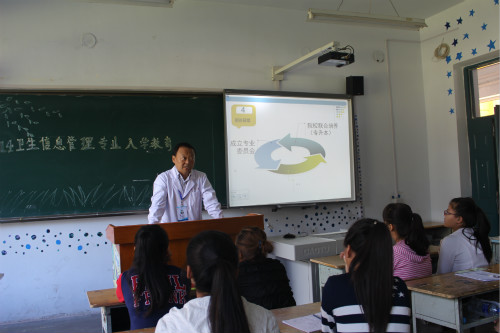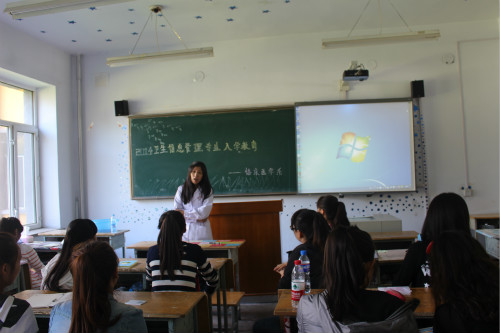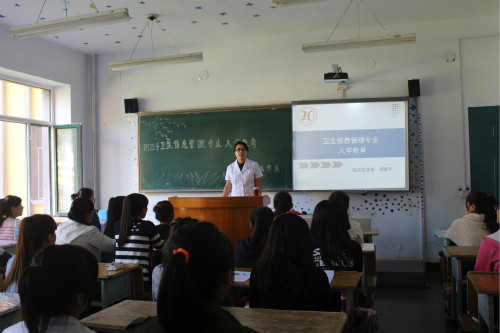 为卫生信息管理专业同学做入学专业教育的还有两位任课教师。王博老师是学校信息中心主任,他表示以往在各卫生机构信息系统工作的人员或者只懂计算机,或者只懂医学,既懂得医学又懂得计算机的人才少之甚少,所以对卫生信息管理专业的学生报以厚望。他说,本专业的学生要学习十门计算机相关课程,每门课程及教材的选出都经过了所有计算机老师的反复斟酌、精挑细选,讲授的时候也会取其精华,量体裁衣,可以说是为卫生信息管理专业的学生量身打造。
