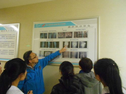 10月31日下午1点,我校临床医学系的学生再一次准时在哈尔滨市第五医院门诊大楼前集合,在市五院带教老师的引领下,有秩序的前往市五院重点科室骨科和烧伤科的病房进行学习,我系临床专业负责人马怡婷和综合教研室主任毕永新为同学们做细心的讲解。