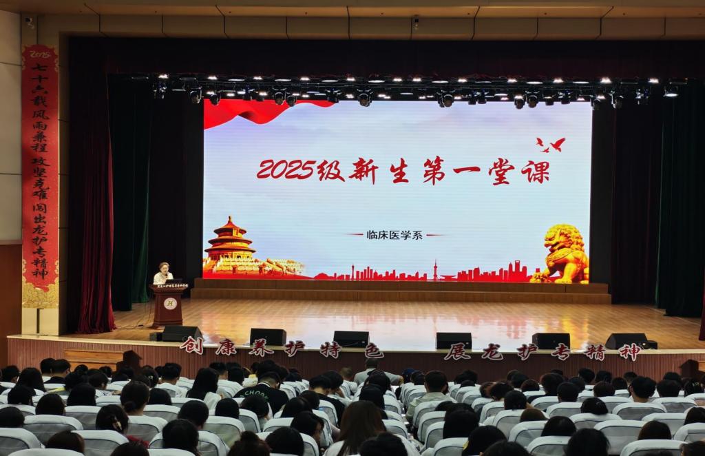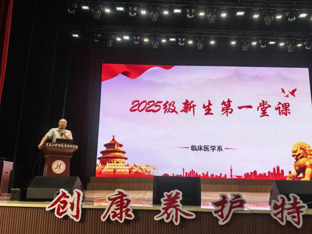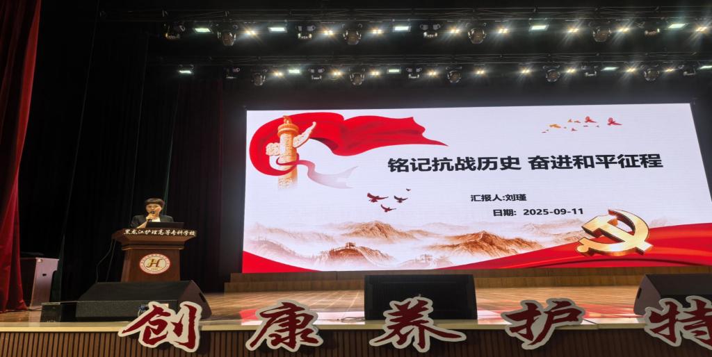 为引导我系各民族青年学生牢固树立正确的国家观、历史观、民族观、文化观、宗教观,增进青年学生对中华民族、伟大祖国、中华文化、中国共产党、中国特色社会主义的高度认同,铭记历史、明确发展方向。2025年9月11日,黑龙江护理高等专科学校临床医学系组织2025级新生开展“纪念中国人民抗日战争暨世界反法西斯战争胜利80周年”主题团日活动。临床医学系负责人刘瑾、团总支负责人张琦敏、辅导员老师白光远、李鹏程、宋媛出席活动,活动由张琦敏主持。